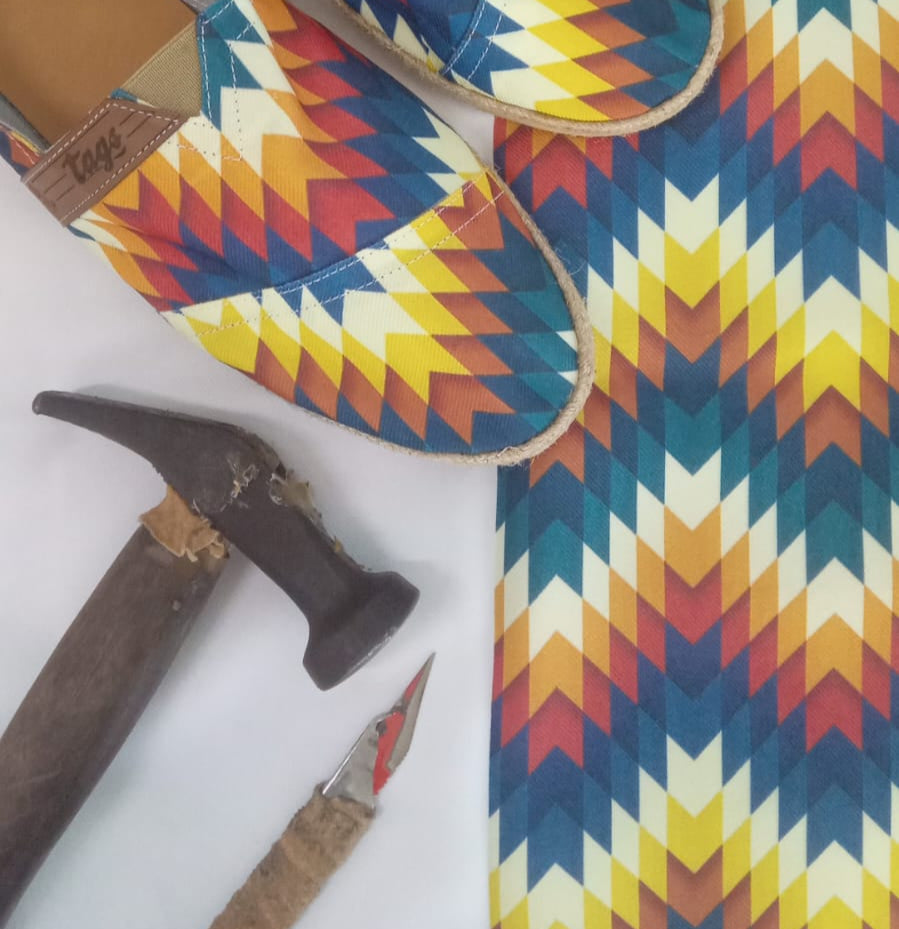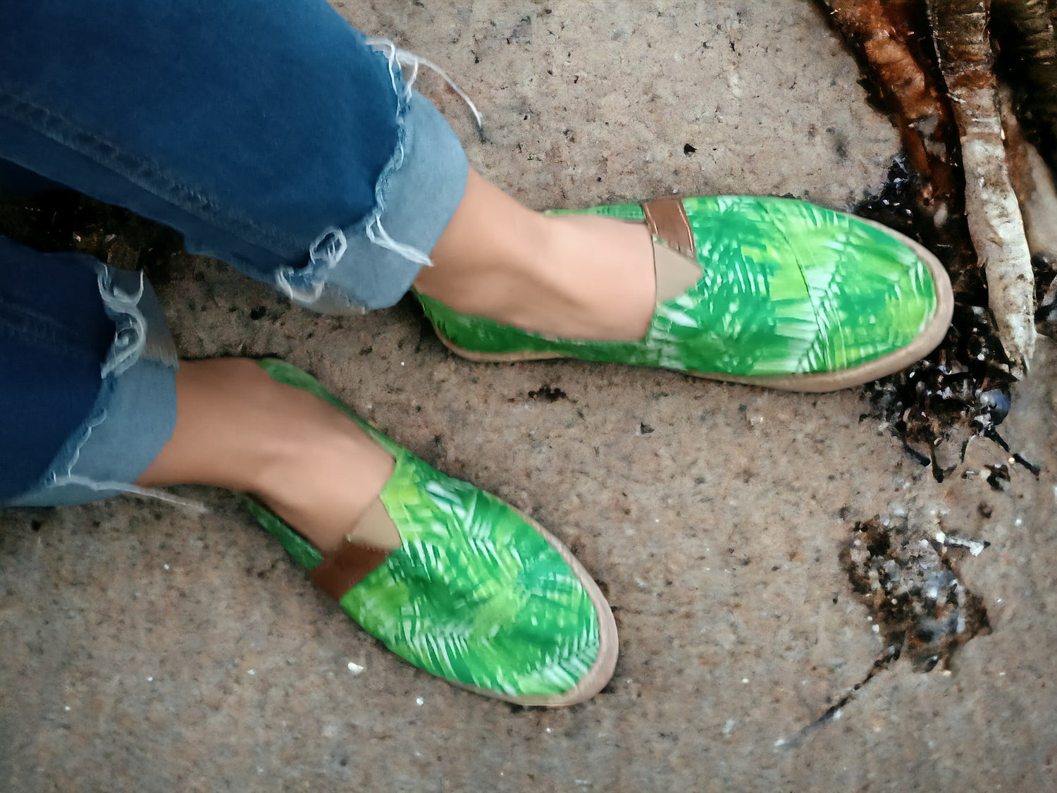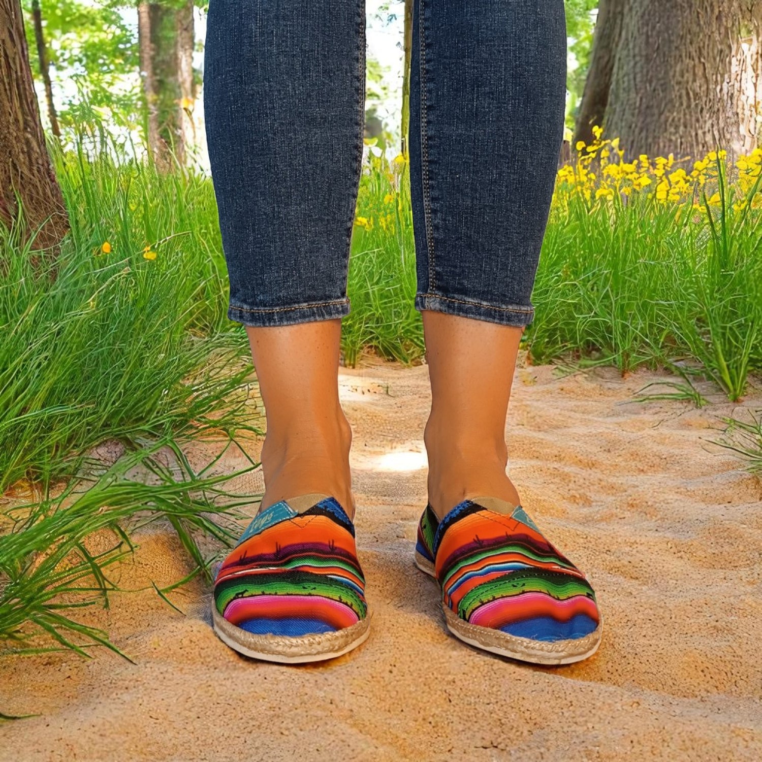Traditionelle mexikanische Strandschuhe mit bedrucktem, robustem, aber geschmeidigem Doppel-Polyestergewebe in klaren Farben und Mustern.