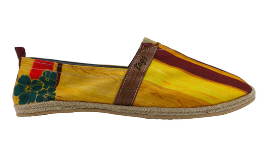 Unsere bunten Schuhe werden in liebevoller Handarbeit von einheimischen Maya-Familien in Mexiko gefertigt. Ihr Herzstück: klassische Espadrilles im traditionellen Maya-Stil – interpretiert in fantasievollen, trendigen Designs. Mit über 130 Farben und ausdrucksstarken Mustern ist jedes Paar ein echtes Unikat. Alle Materialien stammen aus sorgfältig ausgewählten Quellen – für langlebige, robuste und zugleich bequeme Lieblingsstücke.