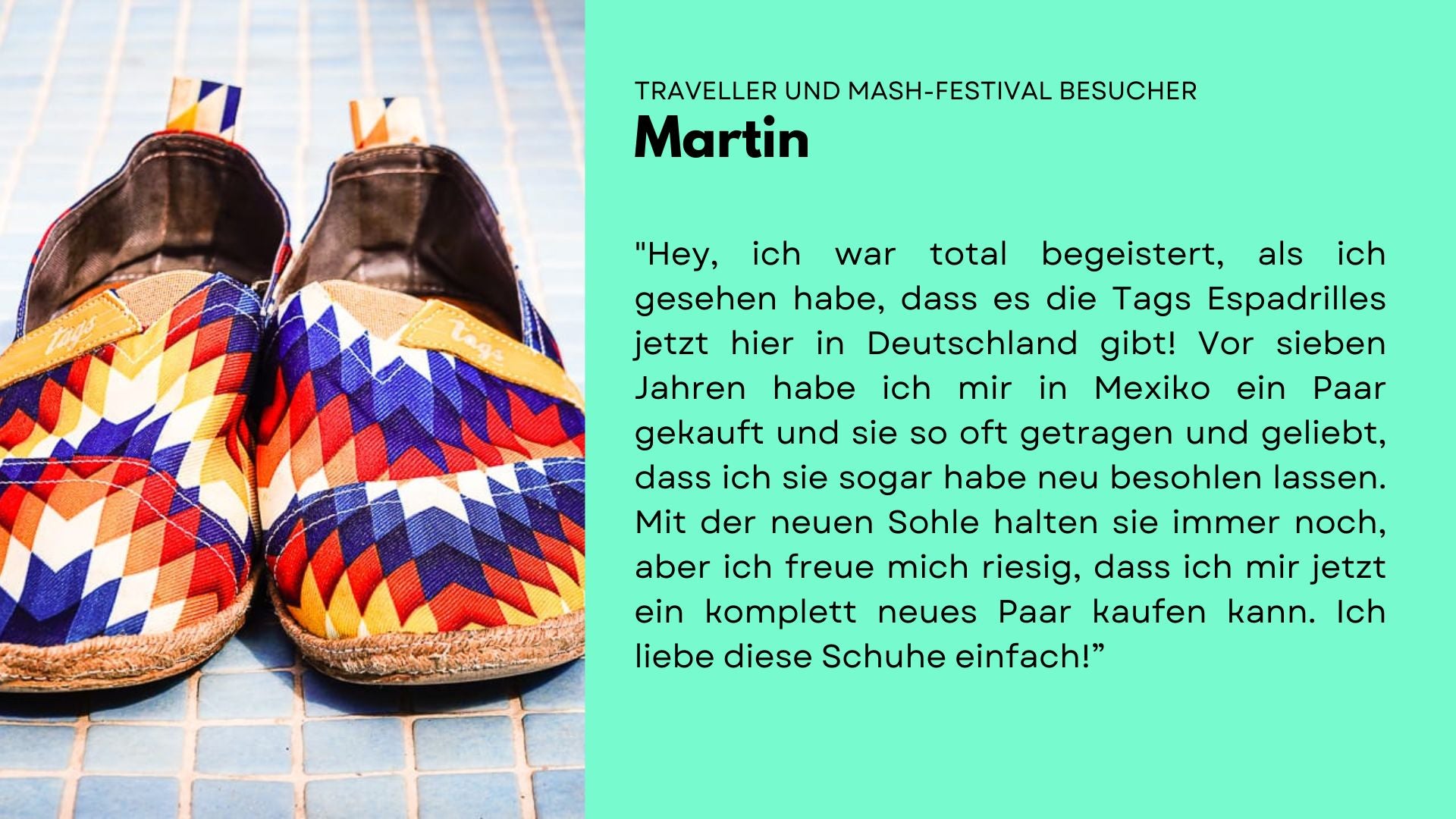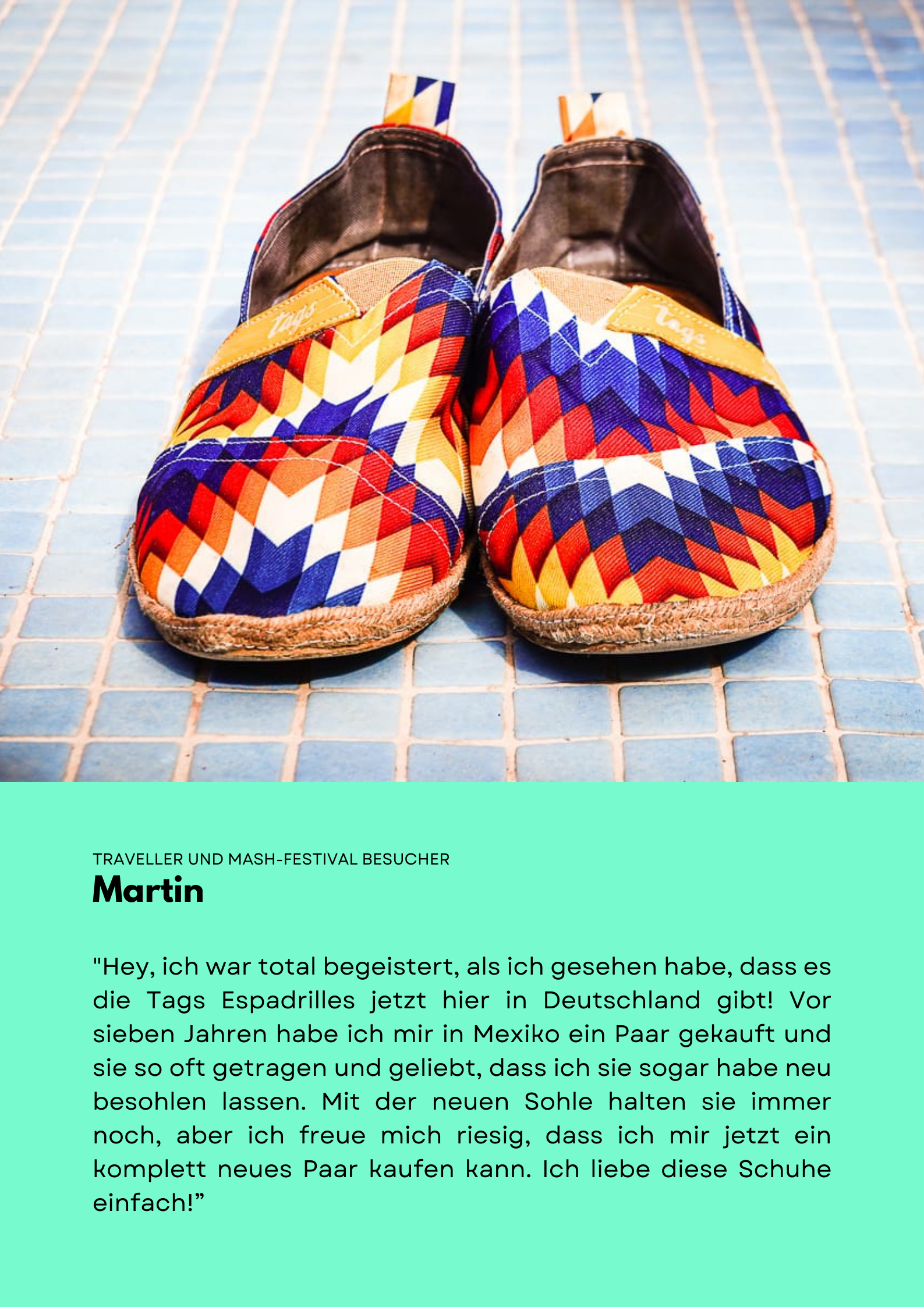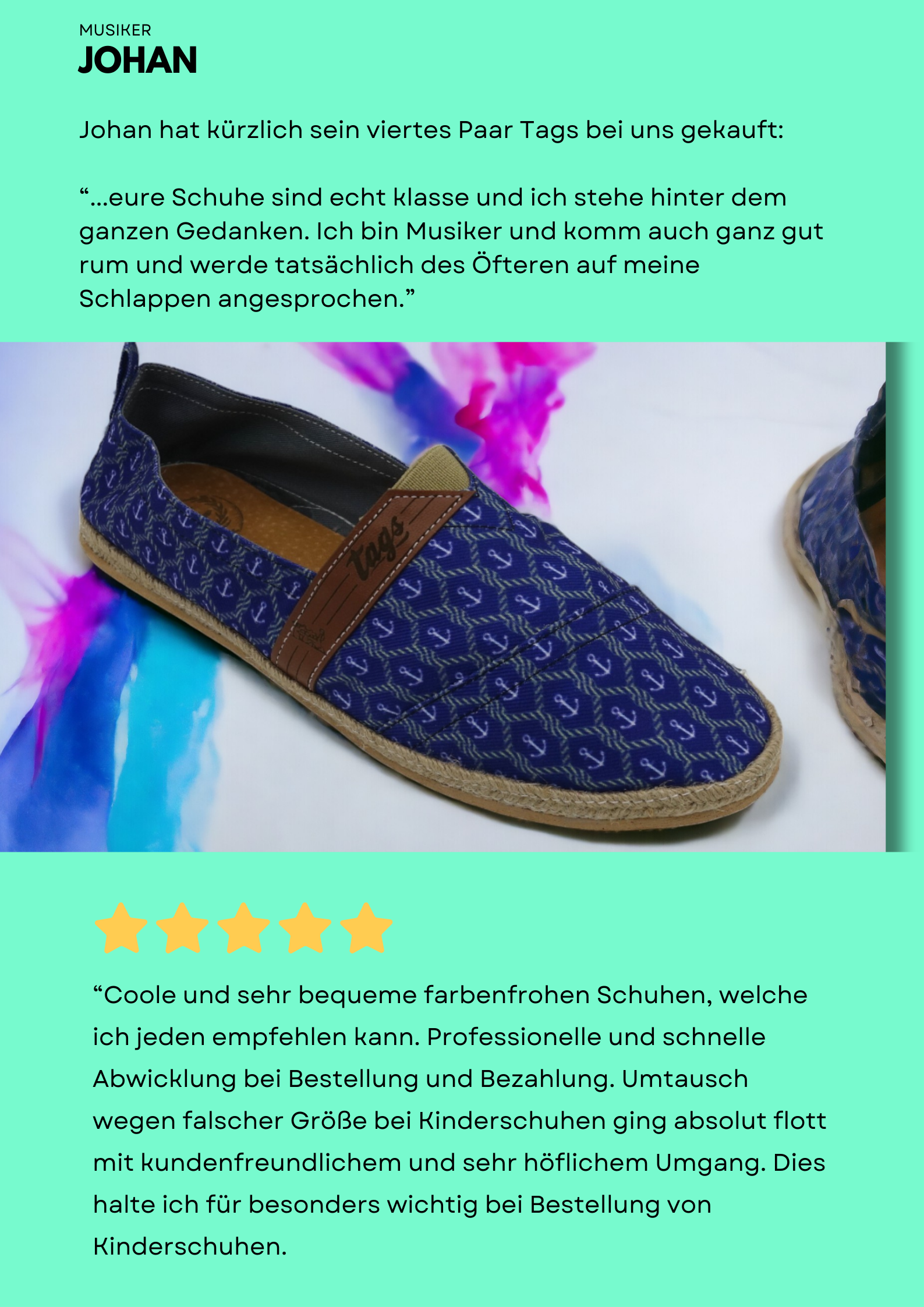 Schick uns ein Foto und ein paar Worte an oder tagge uns auf Instagram – und werde Teil der TAGS-Familie. Wir freuen uns auf dich (und deine Füße)!